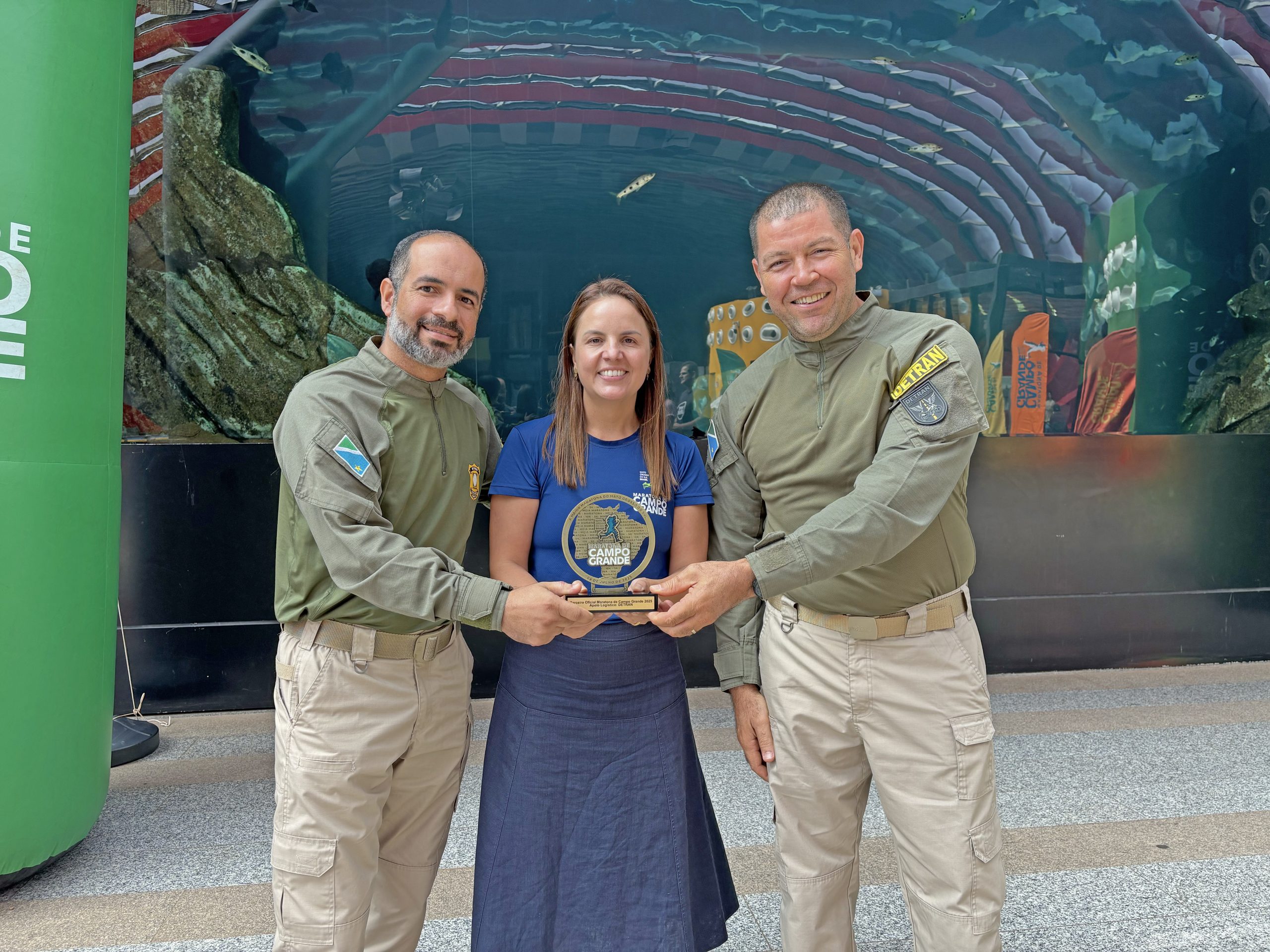 Sempre apoiando eventos em todo o Estado, o reconhecimento veio na manhã de quinta-feira, 24 de abril, quando Ajala recebeu das mãos da organizadora do evento, Kassilene Cardadeiro, um troféu como forma de agradecimento por todos os anos de parceria e cuidado, tanto com a maratona quanto com a população de Mato Grosso do Sul. Kassilene destacou a importância da parceria do Detran-MS em todas as etapas da maratona.