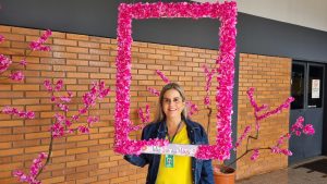 Para estimular as doações na campanha do agasalho “Seu Abraço Aquece”, a DIVRH montou um espaço instagramável com a temática de dia das mães, e sorteou brindes para servidores que depositaram doações na caixa de coleta e que compraram produtos na feira.