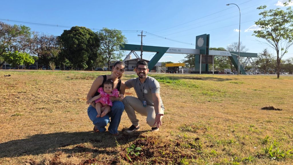 Já entre os mais jovens, o servidor Atayde Carrilho, com 10 anos de casa, plantou ao lado da esposa Carol e da filha Maria Liz. A emoção tomou conta ao relembrar sua trajetória. “Sou apaixonado pelo Detran, apaixonado por essa profissão, apaixonado pelo trânsito. Esse convite foi uma gratidão muito grande. Aqui eu tive grandes conquistas, aqui eu fiz minha família. Então fico muito emocionado de poder deixar essa lembrança com minha filha”.
